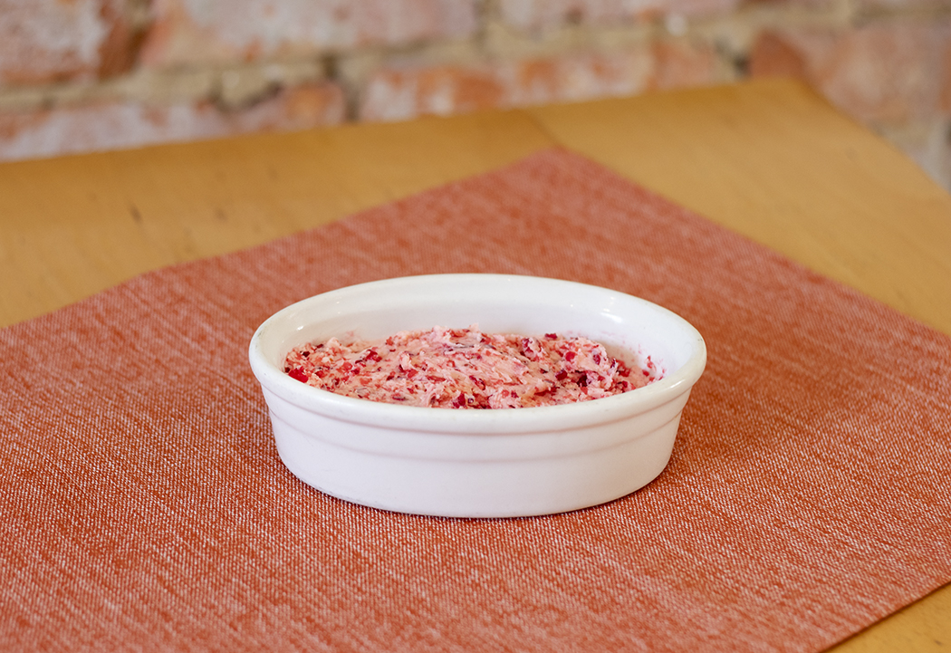Our cranberry butter is a sweet cranberry spread with a hint of orange. It’s perfect to serve with bread as an appetizer or to use on rolls at the dinner table. Comes in a 5 oz package.